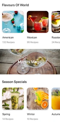 Add your favorite beverages recipe to the app's favorites section. You can use the saved cocktail recipes offline. You can also create alcoholic mixed drink recipe collections on the basis of vodka rum whisky, blended fruits. You can also have cocktails like bloody marys, bourbon drinks, champagne mix, cosmopolitans, daiquiris, hurricanes, gin, margaritas, martinis, mojito, rum, tequila, vodka, whiskey, drinks flavoring & simple syrups, etc.